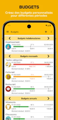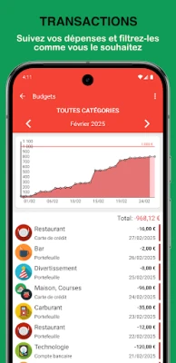 L'application simplifie chaque aspect de la gestion quotidienne. Connectez vos comptes bancaires pour une importation automatique et intelligente de vos transactions, avec des règles personnalisables pour une catégorisation sans faille. Enregistrez vos mouvements financiers en un instant grâce à des modèles astucieux et des widgets pratiques. Planifiez également vos revenus et dépenses récurrents avec des rappels automatiques, vous assurant de ne jamais manquer une échéance. Créez des budgets sur mesure par catégorie et durée, et suivez précisément combien il vous reste pour atteindre vos objectifs financiers.
