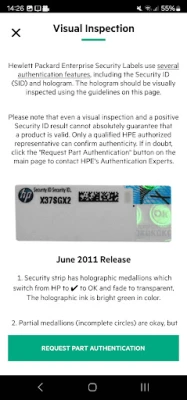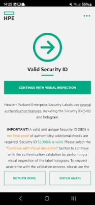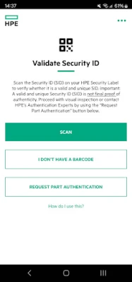 L'application mobile HPE Parts Validation vous permet de valider facilement les identifiants de sécurité HPE, confirmant ainsi l'authenticité de vos pièces HPE. Elle vous guide pour une inspection visuelle ou vous met en relation avec les experts d'authentification HPE.