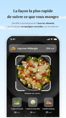 Découvrez une nouvelle dimension dans la gestion de votre alimentation avec une simplicité inégalée. Fini le casse-tête de la saisie manuelle : cette application révolutionnaire vous permet de comprendre instantanément ce que vous mangez. Capturez simplement une image de votre plat, et en quelques instants, notre technologie de pointe identifiera avec précision chaque ingrédient. C'est l'outil idéal pour quiconque cherche à gagner du temps et à simplifier son suivi nutritionnel quotidien.