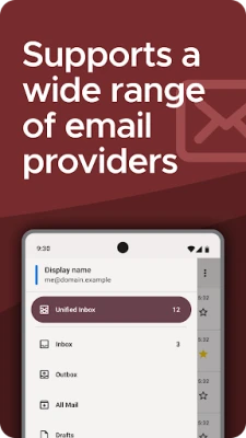 Découvrez K-9 Mail, l'application de messagerie conçue pour une gestion intelligente et sécurisée de vos communications. Pensée pour votre confort et votre tranquillité d'esprit, K-9 Mail vous permet de centraliser tous vos e-mails grâce à la prise en charge de multiples comptes et à une boîte de réception unifiée, simplifiant ainsi votre quotidien numérique. Au-delà de l'organisation, K-9 Mail se distingue par son engagement inébranlable envers votre vie privée : aucune trace, aucune donnée collectée, seulement une connexion directe et sécurisée avec votre fournisseur de messagerie.