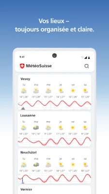 MeteoSwiss est votre compagnon météo complet en Suisse. Accédez à des prévisions précises, mesures actuelles et avertissements de dangers naturels personnalisables par notifications push. Restez informé avec cette application innovante, claire et toujours à jour.