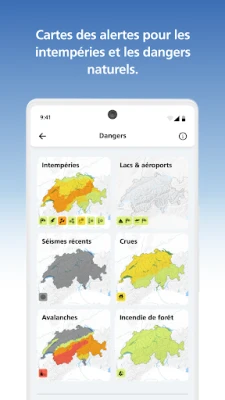 Ne laissez jamais les aléas vous surprendre grâce au système d'alertes de dangers naturels de MeteoSuisse, directement issu des communications gouvernementales. Personnalisez vos notifications push pour des lieux spécifiques et définissez des seuils précis pour tous types de risques : avalanches, orages, crues, gel et bien d'autres, visualisables sur une carte interactive. Au-delà des alertes, suivez en temps réel les mesures de centaines de stations météorologiques, avec des mises à jour toutes les 10 minutes. L'application propose également une section dédiée au Sport & Santé, intégrant la qualité de l'air, les prévisions polliniques, l'indice UV et les hauteurs de neige, ainsi qu'un blog MeteoSuisse actualisé quotidiennement avec des articles captivants sur le climat.
