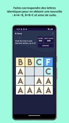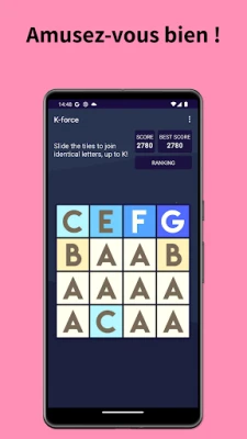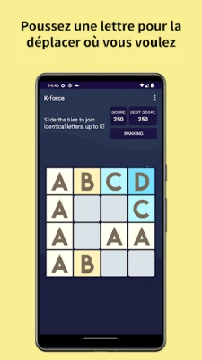 Plongez dans un univers de logique et de stratégie avec ce jeu de fusion de lettres unique. Votre mission est simple mais diaboliquement addictive : combinez des lettres identiques pour en créer de nouvelles, progressant ainsi alphabétiquement. De A+A à B, de B+B à C, votre objectif ultime est de faire apparaître le mystérieux K, la clé de la victoire. Mais attention, chaque mouvement que vous effectuez déclenche l'arrivée d'une nouvelle lettre sur le plateau, apparaissant de manière imprévisible. Cette mécanique ajoute une couche de défi et exige une planification astucieuse pour éviter de se retrouver sans aucune combinaison possible, mettant fin à votre aventure. Préparez-vous à tester votre esprit et votre anticipation à chaque tour.