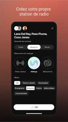 YouTube Music excelle dans l'art de la découverte personnalisée. Laissez-vous guider par des playlists et mix sur mesure, soigneusement élaborés en fonction de vos genres musicaux de prédilection, que ce soit pour une séance d'entraînement dynamique, un moment de relaxation profonde ou une session de concentration intense. Collaborez avec d'autres passionnés ou utilisez nos suggestions intelligentes pour confectionner la playlist parfaite. Votre bibliothèque personnelle reste le refuge de tous vos coups de cœur : titres, artistes, albums et playlists que vous avez précieusement collectionnés.